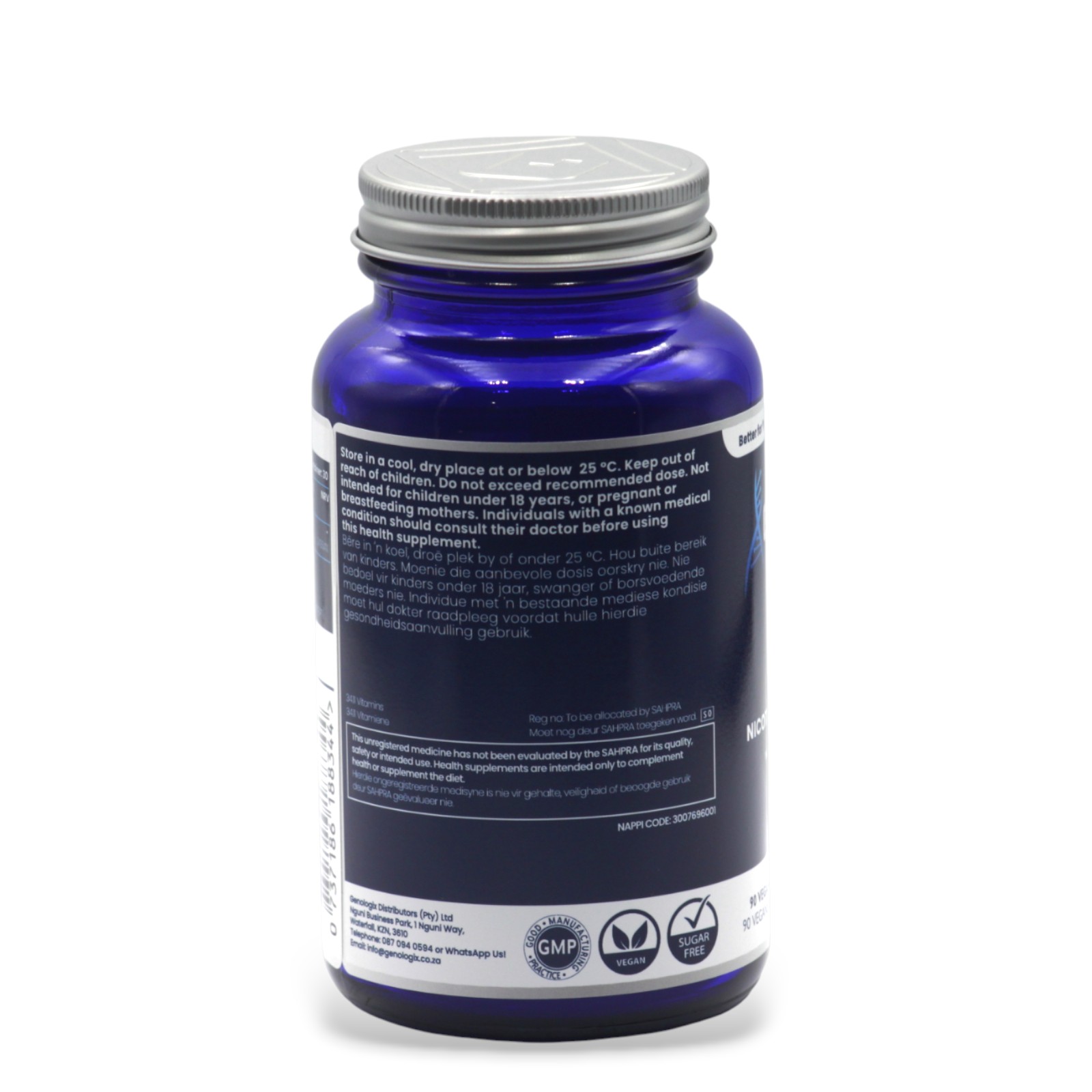 GENOLOGIX NMN assists the body in metabolising carbohydrates, fats and proteins which contributes to normal growth and development, suitable energy levels, proper psychological function and healthy skin. NMN supports vitality and contributes to the reduction of fatigue and tiredness.