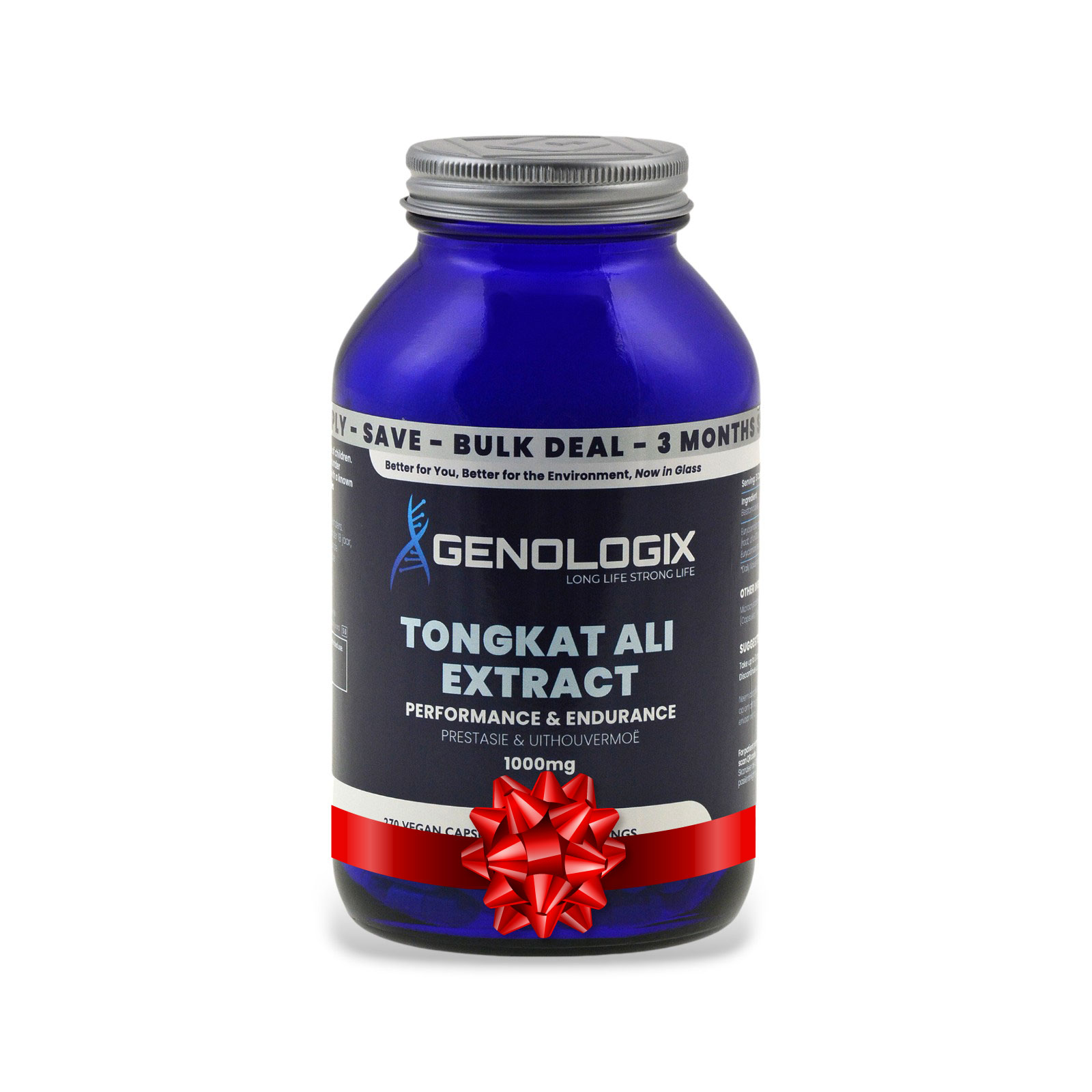 - 270 vegan hard capsules (Halal & Kosher) each containing 333mg of Tongkat Ali Extract = 90 servings of 1000mg Tongkat Ali Extract.